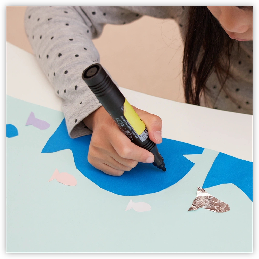 自由に飾って、描いて、貼って。夏休みの大きな作品をみんなで